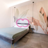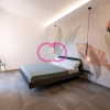 La camera da letto matrimoniale, che gode di un'eccellente illuminazione naturale, è ampia e rilassante nel suo stile minimale, ammorbidito dai delicati colori della carta da parati posta sulla parete di fondo.