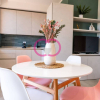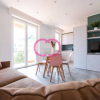 L'angolo cottura sistemato al fianco della porta finestra è ben equipaggiato di tutto il necessario e la zona relax invita a soffermarsi tra i suoi morbidi toni di colore, che proseguono verso l'esterno, grazie al balcone dal quale potrete ammirare lo scorcio sulla Marina di Varazze.