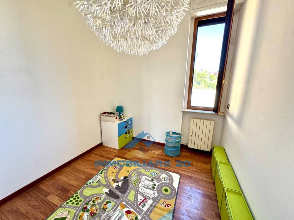 soggiorno, cucina abitabile, studio, disimpegno, due camere, due bagni, balcone a livello.