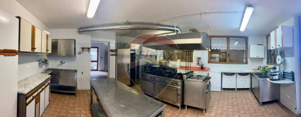 per sodisfare tutti i pasti richiesti a pieno regime, dispensa, deposito ,cappella e sei bagni e altre due