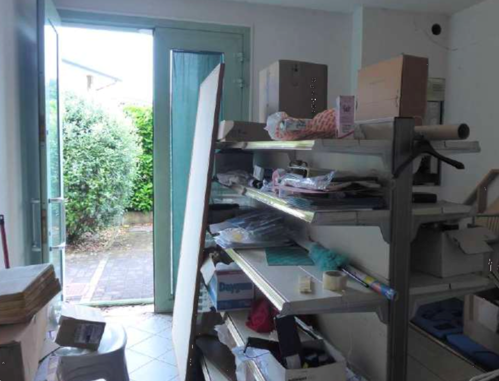 Immobile a destinazione commerciale al piano terra con pertinenziali tre posti auto scoperti facenti parte del condominio La Sorgente situato a Breda di Piave (TV), frazione Saletto in Piazza Vittorio Veneto, l'unità ospita un ampio vano, un retro-negozio con porta secondaria di uscita verso l'area scoperta condominiale, un locale servizi igienici costituito dall'antibagno e da due wc.