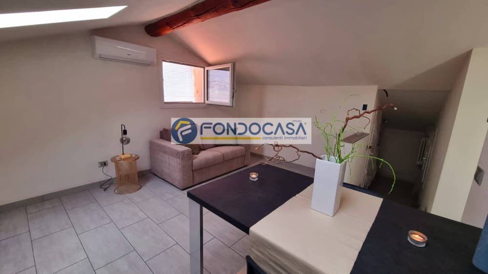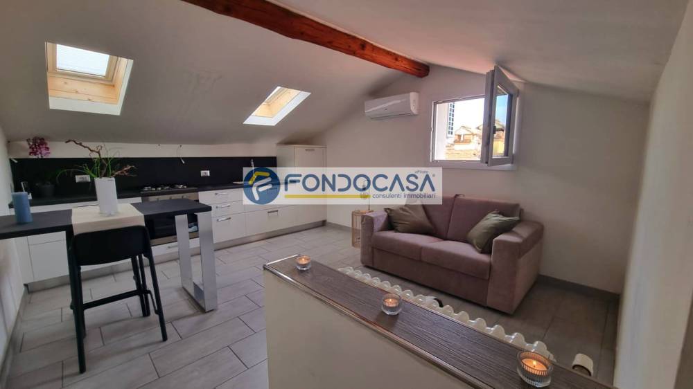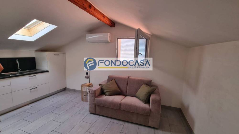 Vista lago ispiratrice.. Ideale a poeti, appartamento all'ultimo piano tipo "attico" in pieno centro storico di Gardone Della Riviera...zona Grand Hotel, composto da: Ingresso, soggiorno con affaccio sul lago e sull'isola di Garda, angolo cottura, camera da letto, bagno, ripostiglio e cabinetta armadio; viene dato in locazione dal mese di Ottobre 2025 al mese di Maggio 2026. Compreso nel prezzo un box auto nei pressi dell'immobile.