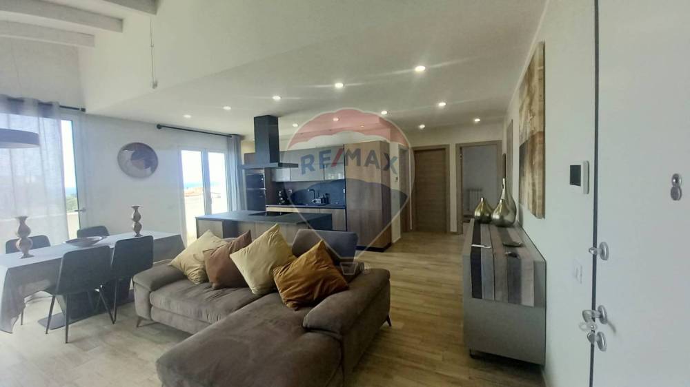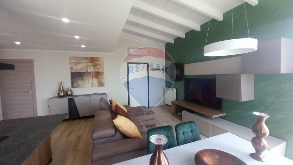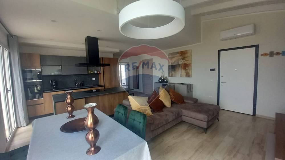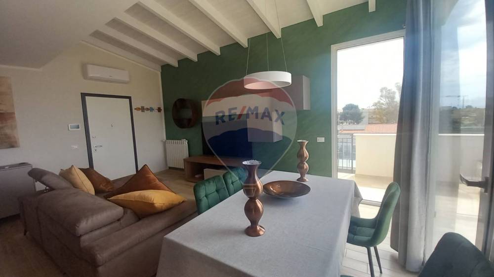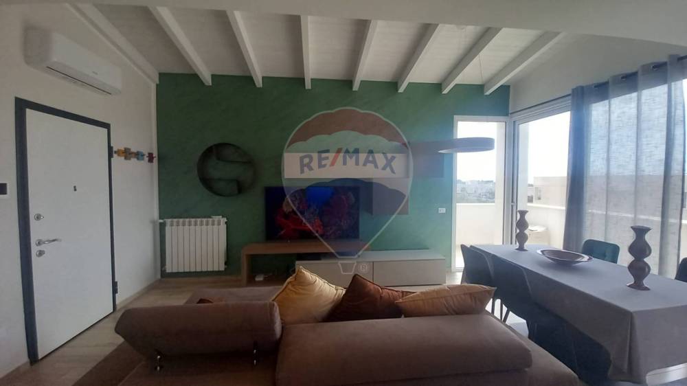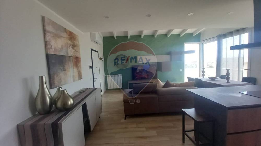 L'attico/mansarda dispone di una cucina a vista, che si affaccia sul luminoso soggiorno, dotato di un balcone terrazzato per tutto il perimetro dell'appartamento, ideale per godersi momenti di relax all'aria aperta.