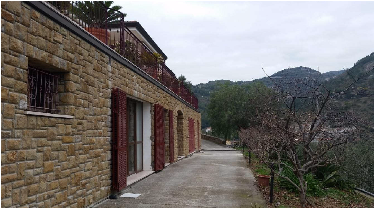 Villa su due livelli di mq 437 oltre laboratorio di mq. 210 e terreni pertinenziali come da CTU. La proprietà è conservata molto bene ed è composta da un terreno piantumato ad oliveto e frutteto di varie qualità e da un fabbricato abitativo di recente costruzione.