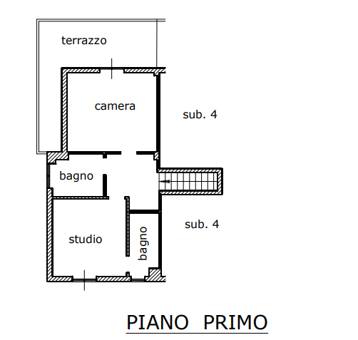 Al piano primo da disimpegno, due bagni, studio, camera matrimoniale e terrazzo.