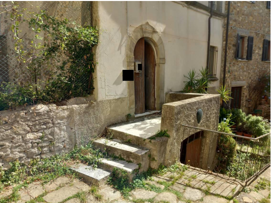 Il piano terra, con accesso da scalinata su Piazza della Chiesa, è suddiviso in ingresso, disimpegno, cucina abitabile con camino, servizio igienico, camera doppia, vano scale di accesso al piano primo e ripostiglio sottostante;
