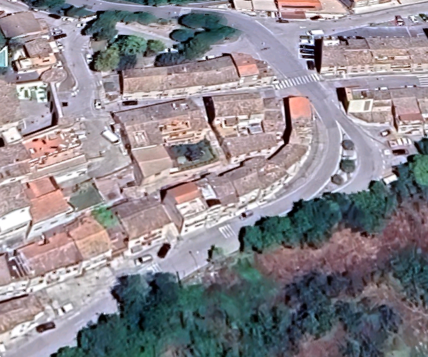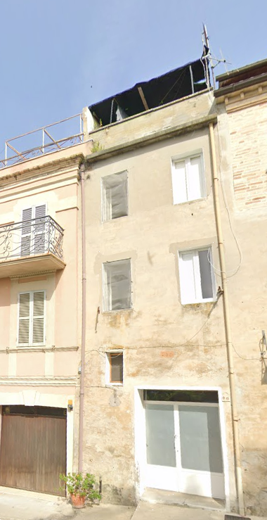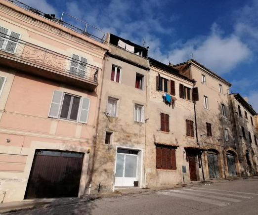 Edificio cielo-terra del centro storico via Vicolo del Gambero nel comune di Petritoli (FM).