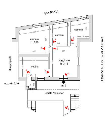 Immobile ubicato in Mignanego (GE) composto da quattro vani (ingresso/soggiorno e n. 3 camere oltre a cucina e wc.