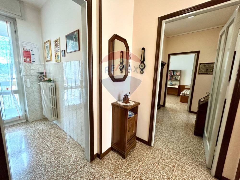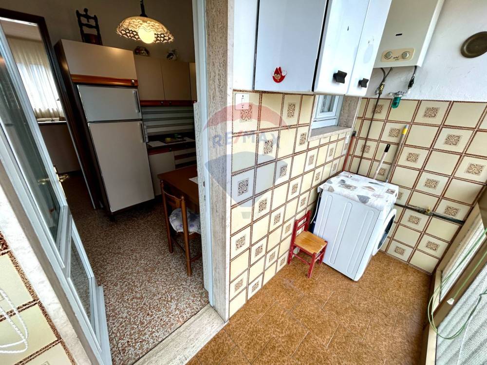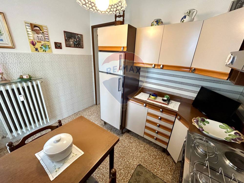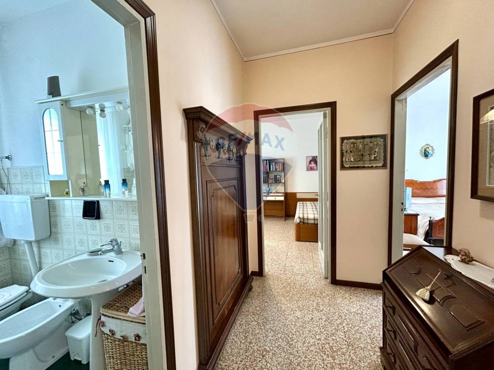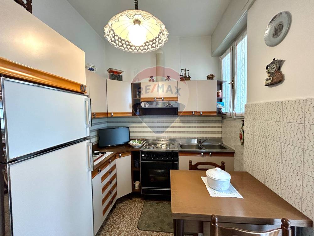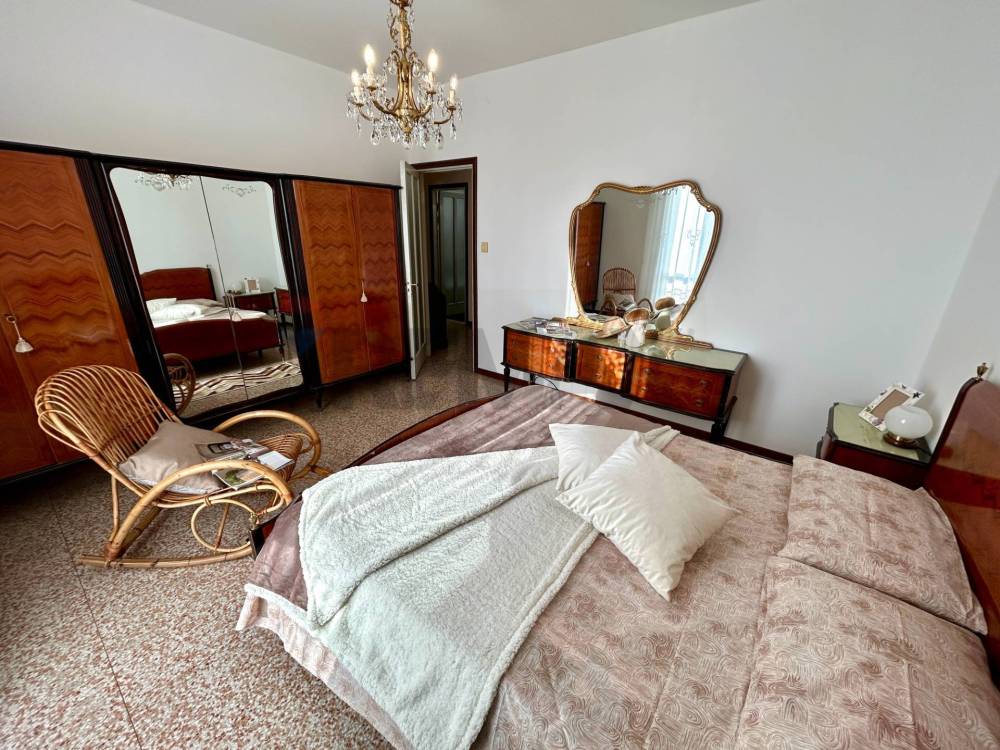 Limmobile viene venduto completo di arredo, ha una superficie di circa 75 mq ed è composto da ingresso, soggiorno spazioso e molto luminoso con accesso diretto al balcone, cucina separata con uscita su un secondo balconcino, disimpegno, due grandi camere matrimoniali e bagno finestrato con vasca. La casa è pronta fin da subito per essere abitata e si presenta con serramenti in legno con doppi vetri, pavimenti in graniglia, aria condizionata con pompa di calore in soggiorno e in camera, riscaldamento centralizzato con valvole termostatiche che registrano il consumo effettivo di ogni locale.