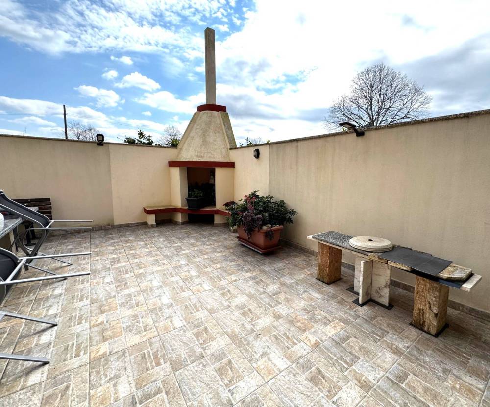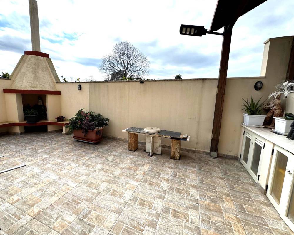 L'immobile si estende su una superficie di ben 120 mq ed ha accesso da veranda privata; si compone di ingresso spazioso, salone luminoso, cucina abitabile con dispensa e accesso diretto a una splendida veranda di ben 55 mq con zona barbecue; disimpegno, tre camere da letto di cui una con predisposizione per bagno en suite, bagno ampio e spazioso.