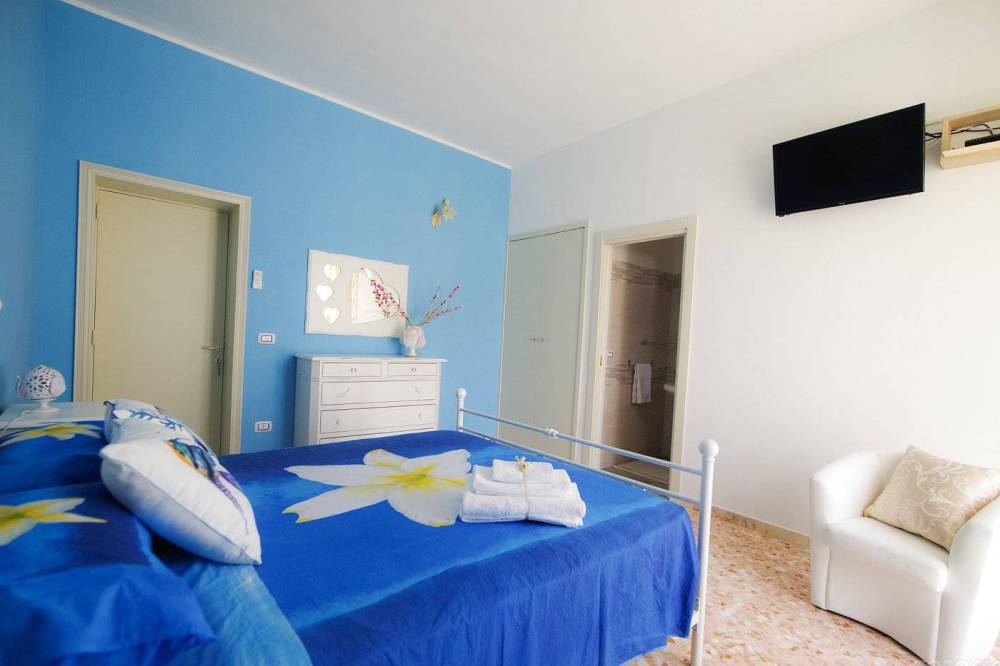 L'immobile ha accesso indipendente su scoperto di proprietà privata; l'ingresso ospita un vano pluriuso soppalcato e finestrato, ideale sia come ripostiglio sia come stanza d'appoggio per il gestore della struttura, inoltre secondo ripostiglio; da comoda scala si raggiunge l'abitazione principale che si sviluppa su una superficie di oltre 150 mq ed è composta da ingresso su luminosa sala adibita a reception, dotata di ampio balcone, disimpegno, sei camere da letto di ampia metratura, luminosissime e tutte con bagno privato. Quasi tutte le stanze godono di balcone o terrazzino privato, ideale per trascorrere le calde serate estive.