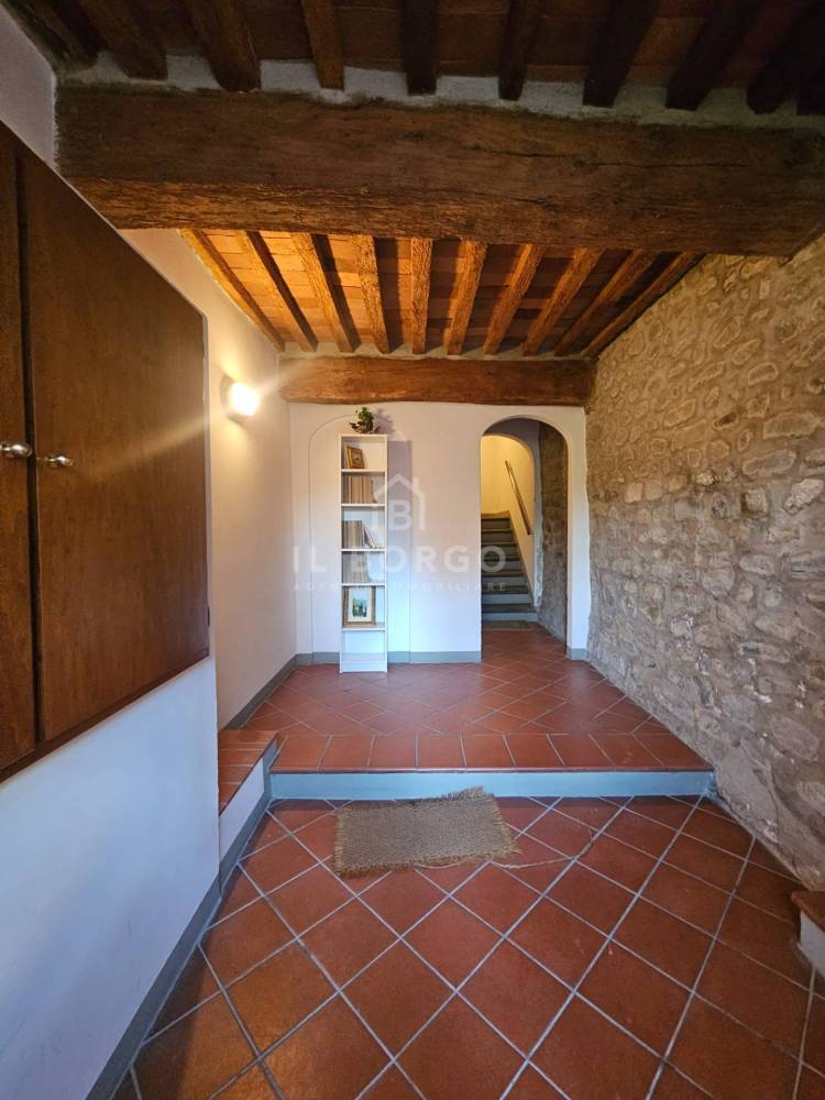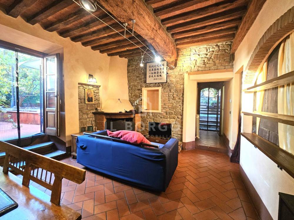 Il Borgo Agenzia Immobiliare propone in affitto all'interno di antica villa del 1600' elegante appartamento posto al primo piano e dotato di giardino privato in parte piastrellato. L'appartamento si presenta in stile rustico toscano con travi a vista e rifiniture in pietra originaria. Il caratteristico soggiorno si apre su un grazioso camino con accesso alla graziosa resede esterna, cucinotto separato e bagno di servizio. Una comoda camera matrimoniale è dotata di bagno privato, oltre ad una cameretta. Di pertinenza dell'abitazione è presente un ulteriore spazio esterno comunicante con la zona giorno ed adibito ad angolo lavanderia ideale per stendere e riporre attrezzature. L'unità immobiliare è completa di arredi e dispone di un posto auto esclusivo scoperto. Disponibile dal 1° Ottobre 2025.