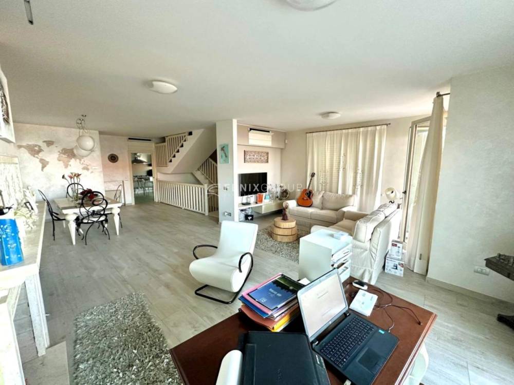 L’ingresso principale si apre su un’ampia zona living open space, un ambiente luminoso e accogliente dove il design moderno incontra la funzionalità.