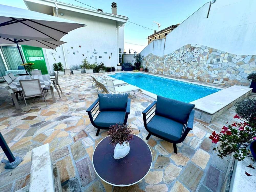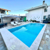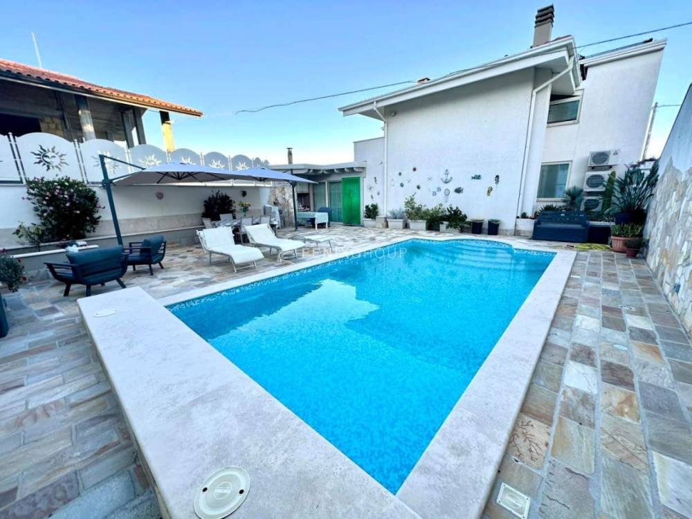 Al centro di questo spazio esterno, perfettamente curato, spicca una piscina a sfioro che incornicia la residenza su tutti e quattro i lati, offrendo un’oasi privata di relax e benessere, ideale per vivere momenti all’aperto in totale riservatezza.