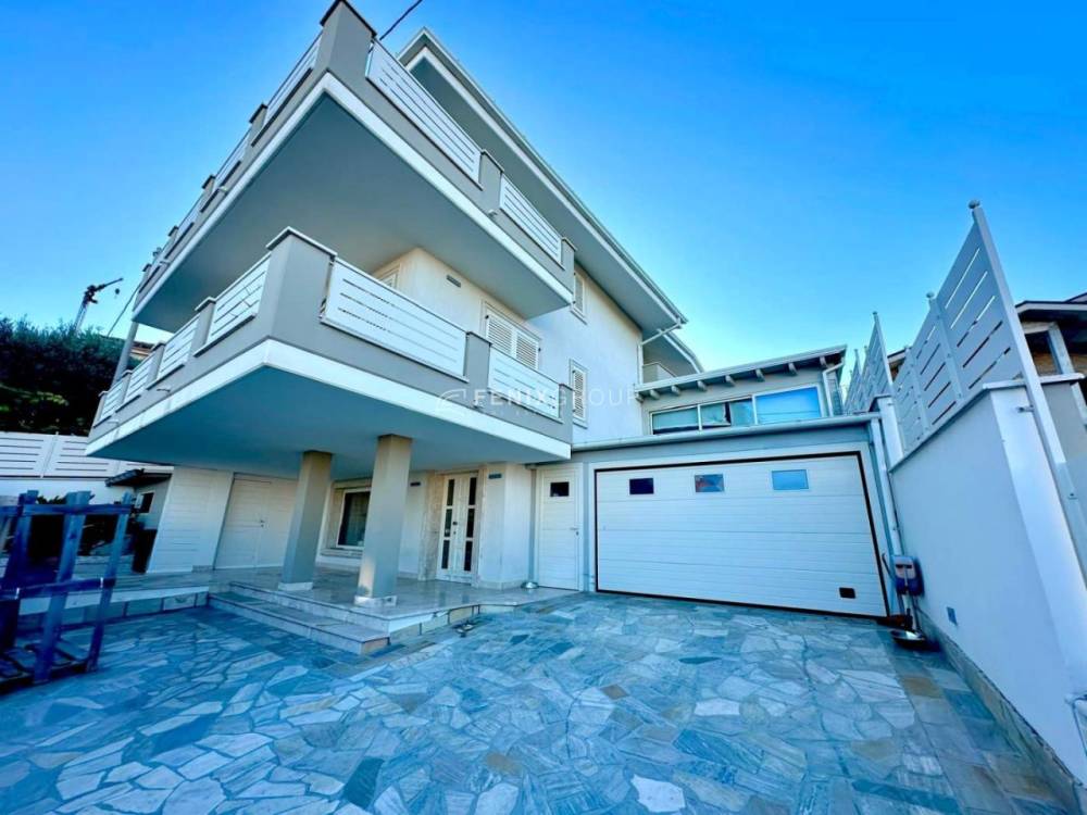 La villa si sviluppa su tre livelli per una superficie complessiva di circa 212 mq interni, circondata da una corte pavimentata di grande eleganza e armonia.