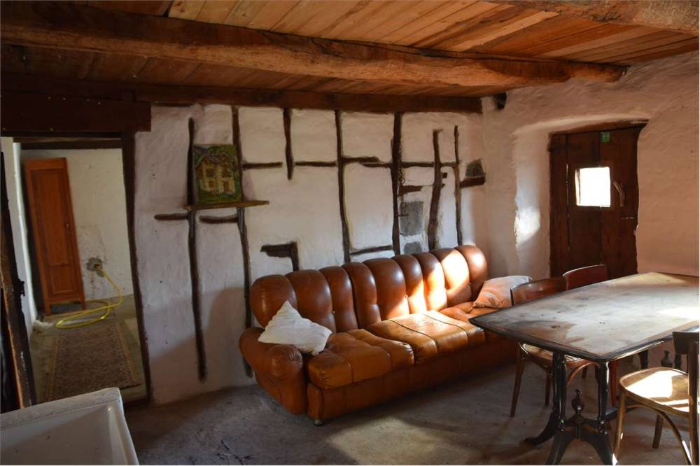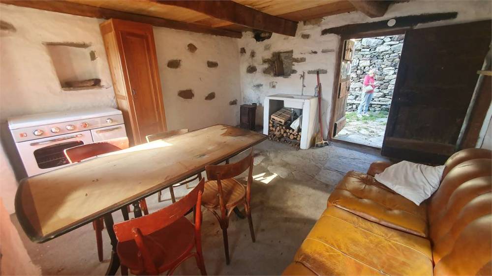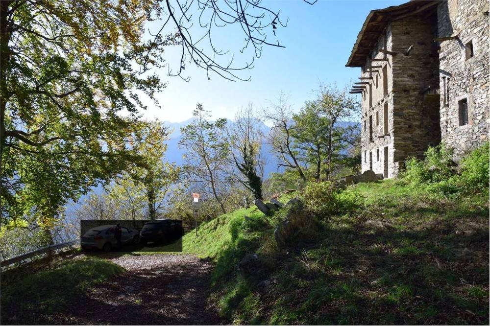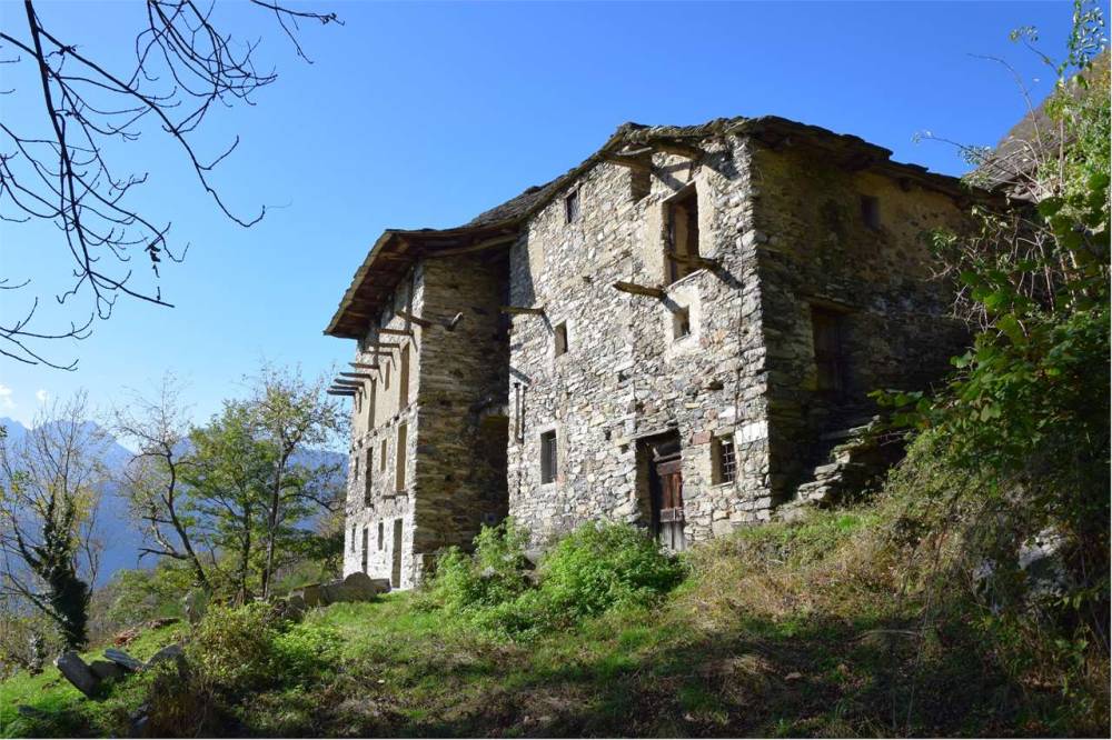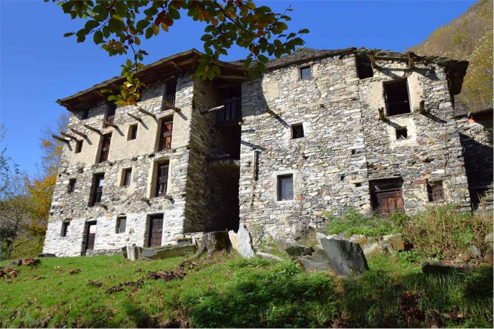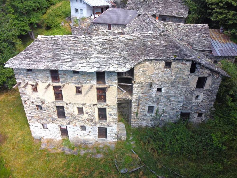 Gli originali balconi in legno sulla facciata principale furono distrutti dall'incendio divampato oltre 50 anni fa e non furono più ripristinati. Tetto originale in piode con manutenzione straordinaria circa 20 anni fa. Per acqua collegamento al bacino idrico. Presente servizio igienico esterno ricavato da un piccolo rustico sul retro del fabbricato principale. Corte esterna di proprietà.