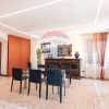 La cucina, completamente arredata con elettrodomestici di alta gamma, si apre su una luminosa sala da pranzo, ideale per ospitare cene e momenti conviviali.