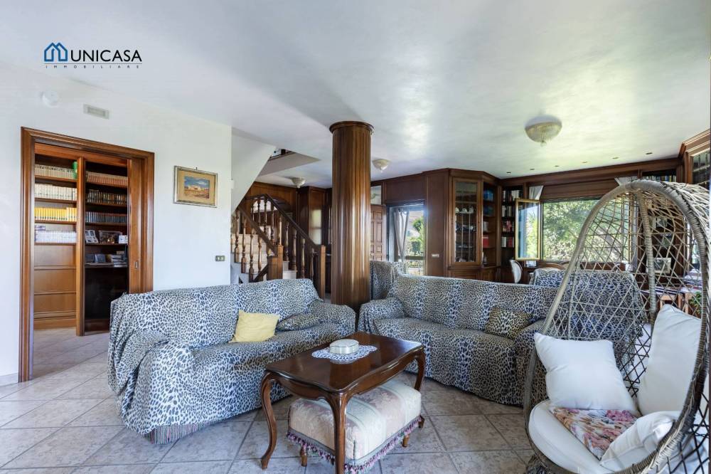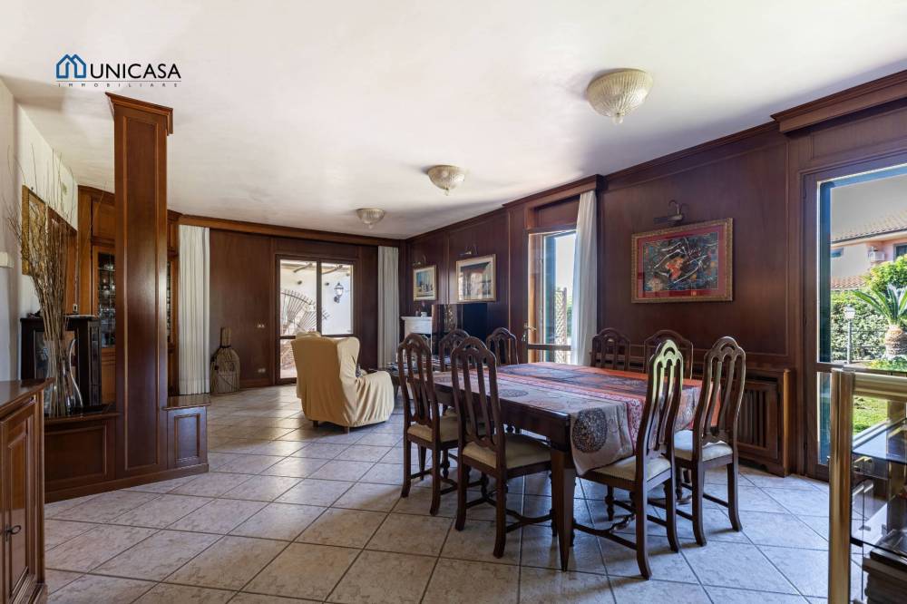 CERVETERI Unicasa Immobiliare propone in vendita elegante villa unifamiliare in complesso residenziale privato, sita in zona centrale. La villa, sviluppata su quattro livelli, è composta da: piano terra ingresso su salone doppio dotato di camino e boiserie, ampio studio con finestra (possibile camera al piano terra), disimpegno, bagno di servizio, un altro salone doppio con camino e cucina abitabile, il tutto con accesso diretto al giardino che circonda tutta la proprietà; piano primo : due camere matrimoniali entrambe con cabina armadio (nata come cameretta), bagno privato di cui uno dotato di vasca teuco idromassaggio e sauna e l'altro dotato di doccia teuco idromassaggio; piano secondo due camere aventi comodi armadi a muro, bagno con doccia e finestra; al piano seminterrato: 95 mq di sala hobby con cucina a vista , bagno di servizio, lavanderia, sala palestra avente bagno e spogliatoio.