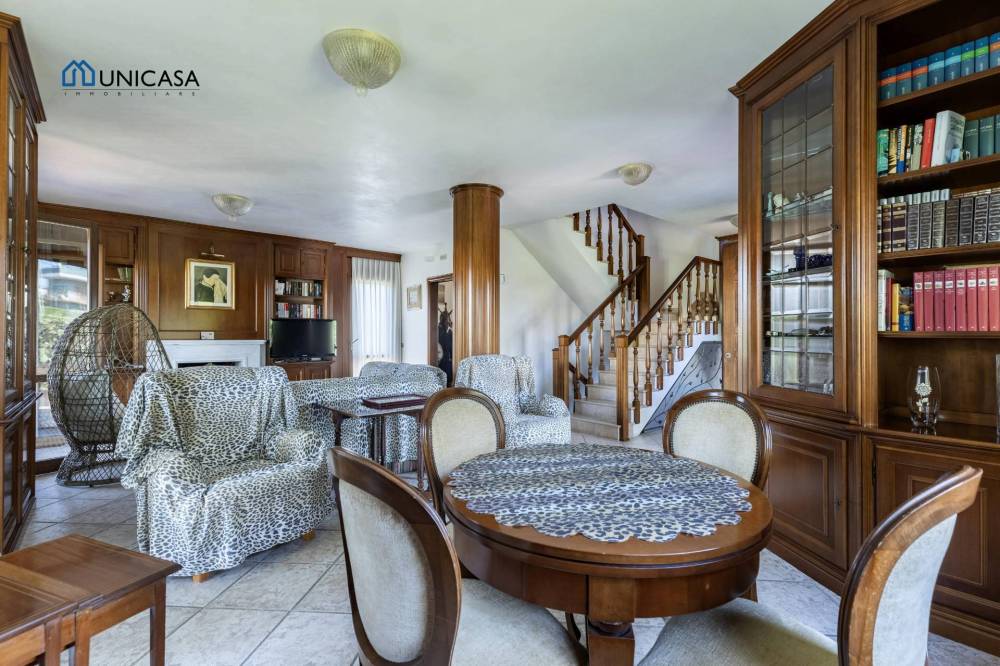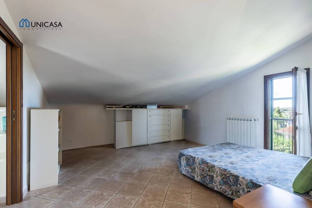 CERVETERI Unicasa Immobiliare offers for sale an elegant detached villa in a private residential complex, centrally located. The four-story villa comprises: the ground floor comprises an entrance hall leading to a double living room with a fireplace and wood paneling, a large study with a window (possible ground-floor bedroom), a hallway, a guest bathroom, another double living room with a fireplace, and an eat-in kitchen, all with direct access to the garden surrounding the property; the first floor comprises two double bedrooms, each with a walk-in closet (originally a children's bedroom), and a private bathroom, one with a Teuco hydromassage tub and sauna, and the other with a Teuco hydromassage shower; the second floor comprises two bedrooms with spacious built-in closets, and a bathroom with shower and window; the basement comprises a 95 sq m hobby room with an open-plan kitchen, a guest bathroom, a laundry room, and a gym with a bathroom and dressing room. The floor is surrounded by a cavity wall that allows for insulation. The property includes two garages with both internal and external access.