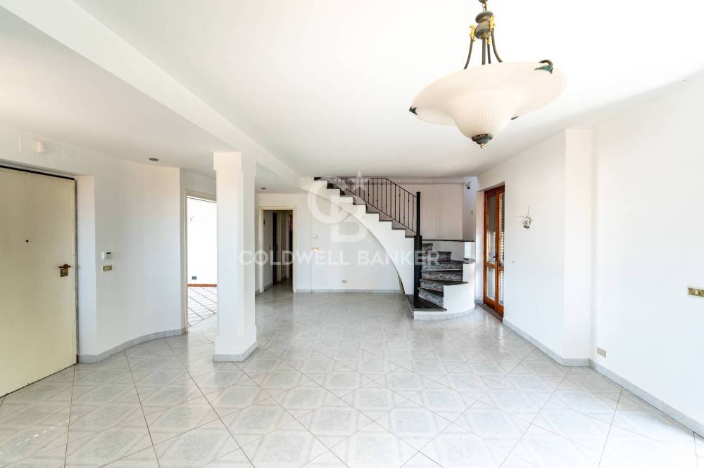 Una scala interna, rifinita con cura, conduce al piano superiore mansardato, composto da uno stanzino, un locale stenditoio, un bagno lavanderia e un altro terrazzo panoramico, perfetto per godere di viste suggestive e aria aperta.