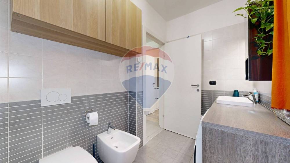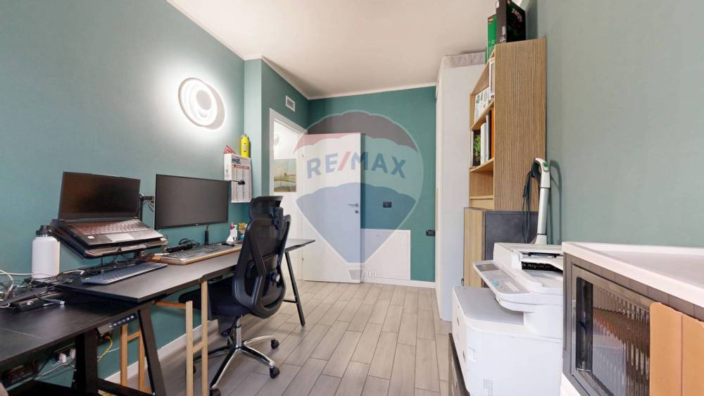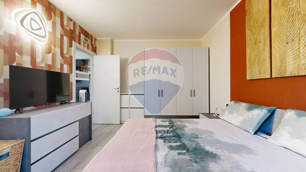 Un disimpegno funzionale conduce alla camera matrimoniale con balcone privato, a un bagno finestrato e a una seconda camera ideale per bambini, ospiti o come studio.