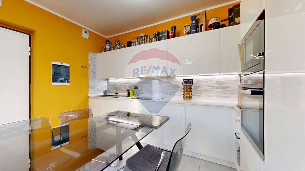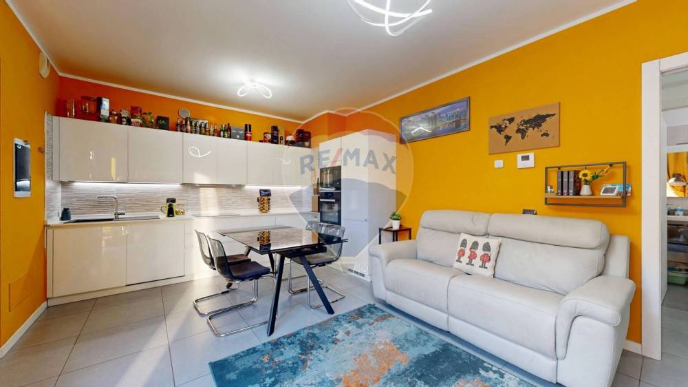 Lappartamento si apre su una zona giorno luminosa e accogliente, con angolo cottura perfettamente organizzato per la vita quotidiana.