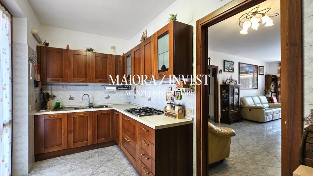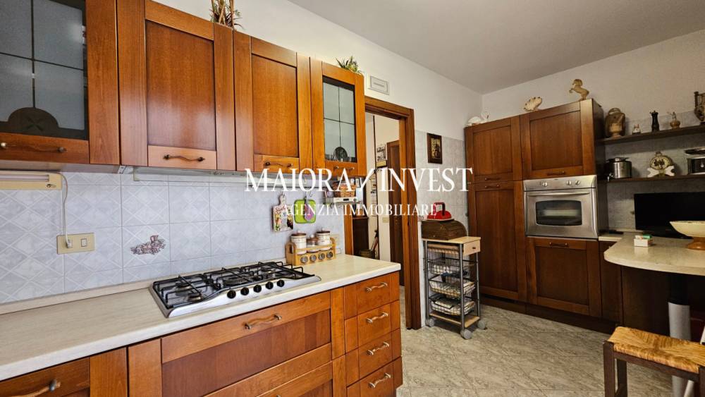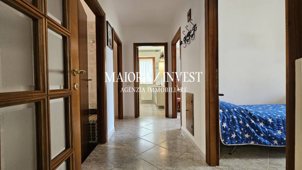 Grottammare - In comoda zona residenziale a pochi metri da tutti i servizi e a circa 700 metri dalla spiaggia, appartamento di ampia metratura posto al piano primo di piccolo caseggiato costruito alla fine degli anni 90 e privo di amministratore. L'immobile di circa 125 mq è composto da ingresso su ampio e luminoso soggiorno con caminetto, una cucina abitabile, disimpegno, tre camere di cui due matrimoniali e una singola comoda, due bagni finestrati di cui uno fornito di doccia e l'altro fornito di doccia e vasca e un ripostiglio/lavanderia posto antistante l'ingresso dell'abitazione e di circa 6 mq. L'unità abitativa gode di esposizione sud/nord ed est e dispone di ottime finiture interne, infissi in legno con doppio vetro, persiane in pvc, riscaldamento autonomo con radiatori in ghisa, videocitofono e zanzariere alle finestre. Completano la proprietà una corte terrazzata di circa 60 con possibilità di posteggiare due auto, un comodo garage provvisto di serranda elettrica di circa 33 mq oltre ripostiglio sottoscala di mq 8 e spazio antistante di circa 100 mq sfruttabile come posti auto. Possibilità di acquisto di un ulteriore fondaco di mq 74 con importo da computare a parte. Ottima soluzione immobiliare per ampio nucleo familiare e per chi cerca spazi comodi nelle immediate vicinanze della spiaggia e dei servizi. Codice di riferimento 1471. Agenzia Immobiliare Maiora/Invest.