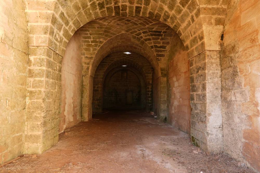 Terzo blocco: pianta a L, con lungo ambiente di circa 50 metri, coperture a volta e antiche mangiatoie in pietra.
