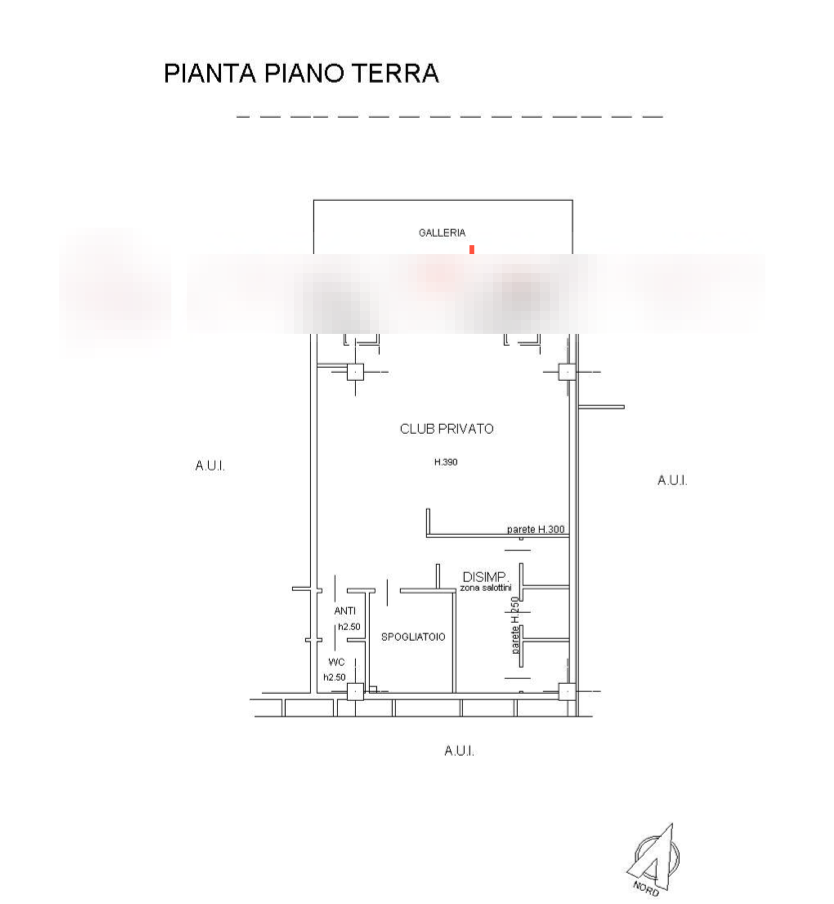 Locale commerciale al piano terra, fronte galleria, con compartimentazioni