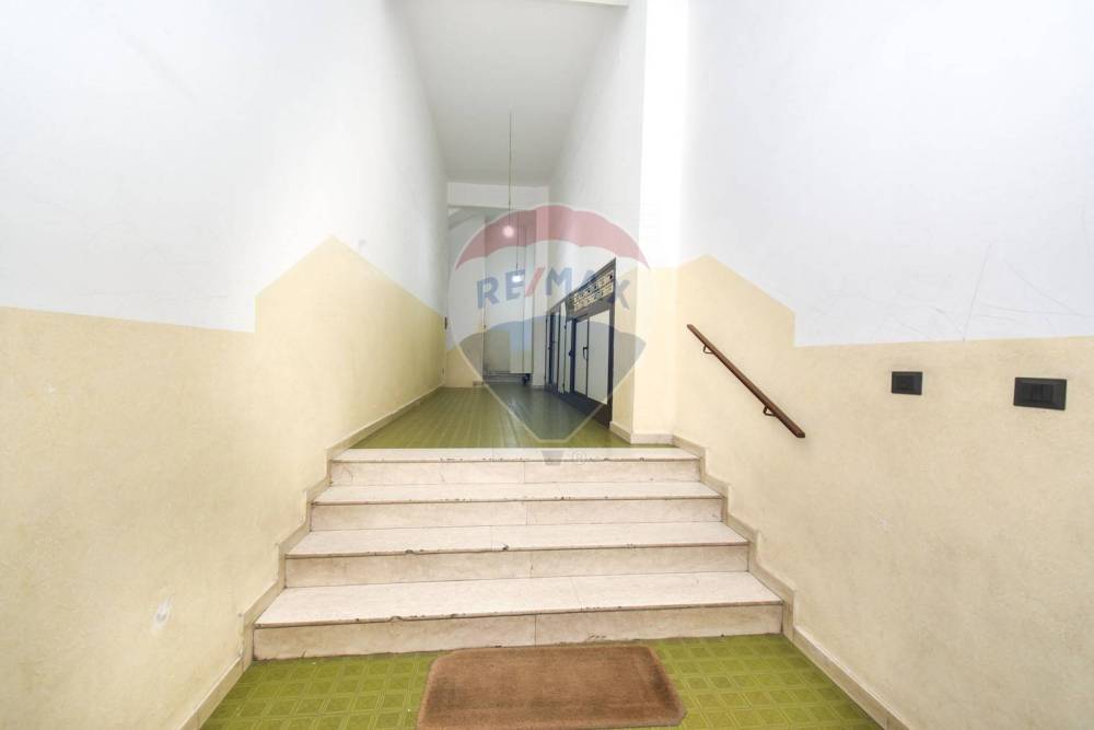 Completa la proprietà un comodo box auto singolo soppalcato al piano terra, con ingresso da Piazza degli Ulivi e collegato internamente tramite scala condominiale.
