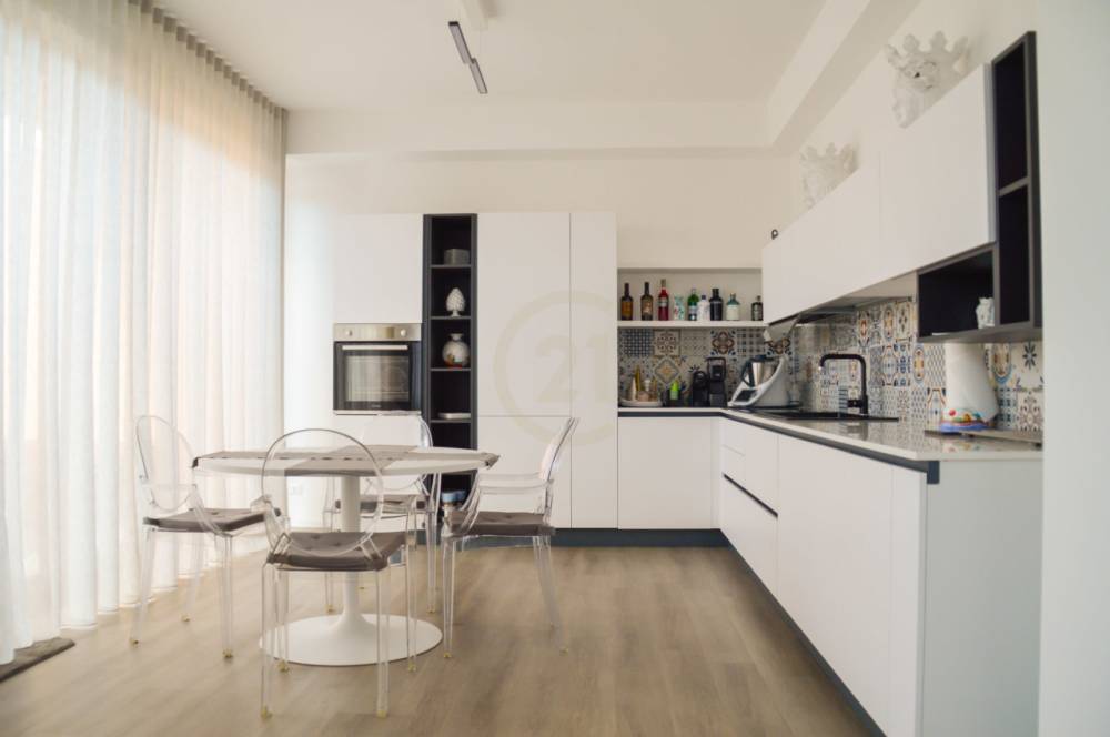 Villa signorile con piscina situata in una delle zone più periferiche di Aci Catena, a 5 minuti dal casello autostradale di Acireale. Distribuita su quattro eleganti livelli, ciascuno realizzato per offrire comfort e raffinatezza, in classe energetica A+ Entrando dal cortile d’ingresso, che include comodi posti auto, si accede alla villa, che colpisce immediatamente per la qualità delle finiture e l'attenzione ai dettagli. Al piano seminterrato, l’eleganza incontra la convivialità in un open-space dalla superficie di 80 mq, dove cucina e soggiorno si fondono in un ambiente luminoso e contemporaneo. Questa zona è stata progettata per accogliere cene intime o piacevoli momenti con gli amici. Al piano terra, un lussuoso salone introduce alla zona giorno principale, dove le ampie superfici e l’architettura degli spazi si esprimono in un'atmosfera sofisticata. Completano il piano uno studio e un bagno di rappresentanza. Proseguendo verso il primo piano si raggiunge la zona notte, uno spazio dedicato al riposo e al benessere familiare. Qui troviamo tre spaziose camere da letto, ciascuna pensata per garantire il massimo della privacy, e due bagni finemente decorati. Tutte le camere godono di balconi privati con vista. Il secondo ed ultimo piano ospita una mansarda abitabile e già rifinita, unico ambiente versatile dotato di lavanderia interna e predisposizione per finestre a tetto. La luminosità naturale può così inondare questo spazio, rendendolo ideale anche per una zona relax o come accogliente area per gli ospiti. Le finiture sono di alto livello: la scala è rivestita con prestigioso cotto fiorentino, mentre in tutti i piani si estende un parquet di prima scelta, che dona calore agli spazi. La villa è termoautonoma, con caldaia di ultima generazione, e dotata di climatizzatori in classe A++ in ogni ambiente. Le ampie finestre sono realizzate con vetri antisfondamento, mentre un impianto d’allarme perimetrale aggiunge ulteriore sicurezza. Impianto fotovoltaico 6kw Il piano della cucina soggiorno gode di una corte esterna attrezzata con un elegante tavolo in ferro battuto, e grandi ombrelloni a protezione di tavolini e poltrone, un angolo perfetto dove ritirarsi per un caffè o una lettura in completo relax. Nell'area giardino una splendida piscina privata rifinita in pietra bianca, dal design elegante e perfettamente integrata nell’ambiente esterno. L’impianto di depurazione è a sale con sistema completamente automatizzato, gestito da due computer indipendenti che garantiscono un’acqua sempre cristallina con il minimo intervento manuale. La piscina è dotata di predisposizione per riscaldamento dell’acqua, ideale per un utilizzo prolungato anche nei mesi meno caldi. Inclusa inoltre la predisposizione per la realizzazione di spogliatoio e bagno con antibagno. Inoltre all'esterno del residence è possibile usufruire di un ampio parcheggio libero, assicurando ulteriore comodità. RIF. 7024