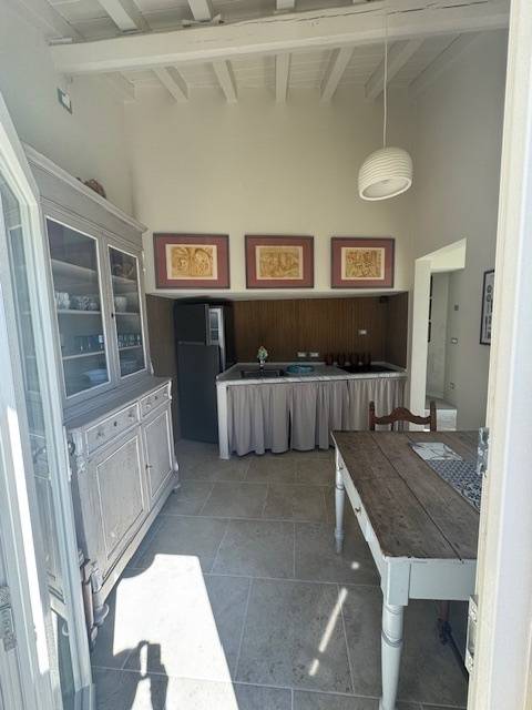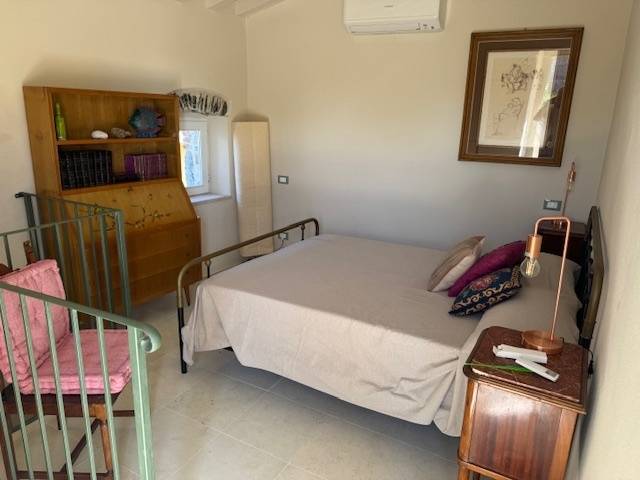 Montemarcello, in zona adiacente al centro ma fuori dal borgo in affitto solo per uso transitorio senza residenza appartamento posto su due livelli composto da ingresso dal giardino privato, soggiorno con zona cottura, servizio, tramite scala si accede al primo piano dove si trova la camera da letto matrimoniale con cabina armadi e la terrazza pranzabile con vista mare.