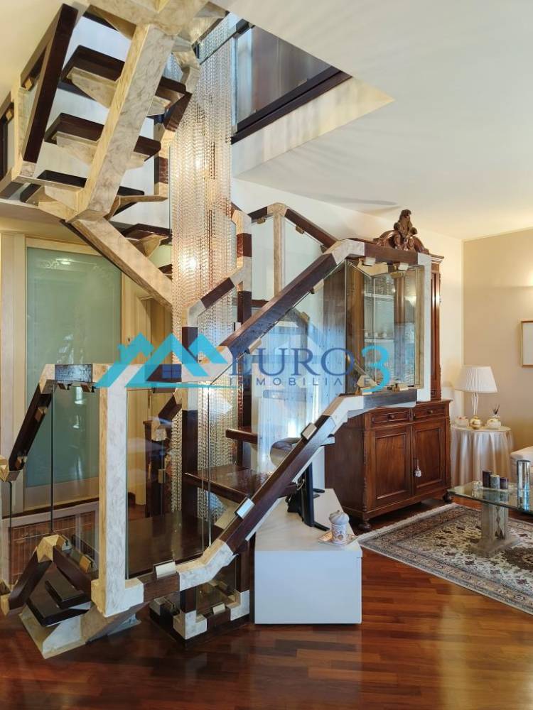 L'immobile è in condizioni perfette, con infissi nuovi e climatizzatori internamente suddiviso in: ingresso-disimpegno, salone con terrazzina abitabile, cucina abitabile con balcone, corridoio che porta alla zona notte con armadiatura su misura, 3 camere di cui due matrimoniali, 2 bagni; al piano superiore, accessibile anche da scala condominiale per eventuale realizzo di secondo appartamento, troviamo 2 ampi locali finestrati e climatizzati, bagno con antibagno, locale lavanderia.