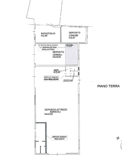 A completare la proprietà vi sono più corpi a uso artigianale: un laboratorio in unico ambiente di circa 126 mq con altezza 3,70 m; un deposito attrezzi agricoli e deposito cereali di circa 298 mq con altezza 6,50 m e soppalco metallico; un ricovero attrezzi di circa 33,8 mq con altezza 2,45 m.