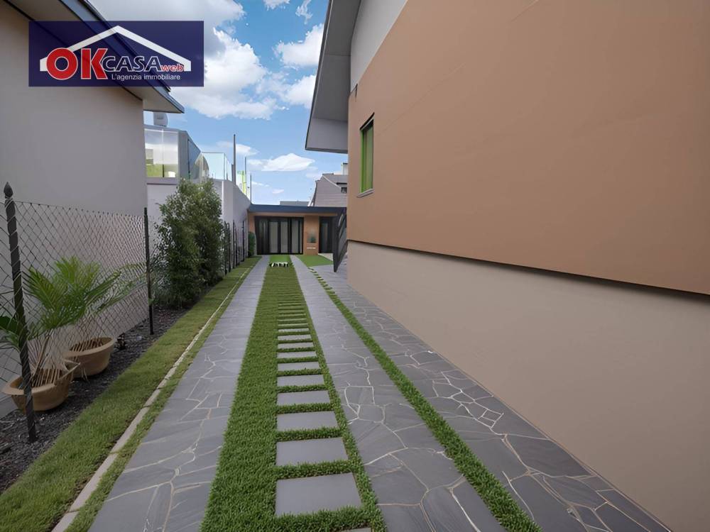 Allesterno, la proprietà è valorizzata da un grande giardino piantumato che circonda lintera abitazione, con vialetto daccesso, cancello carraio per le auto e cancelletto pedonale.