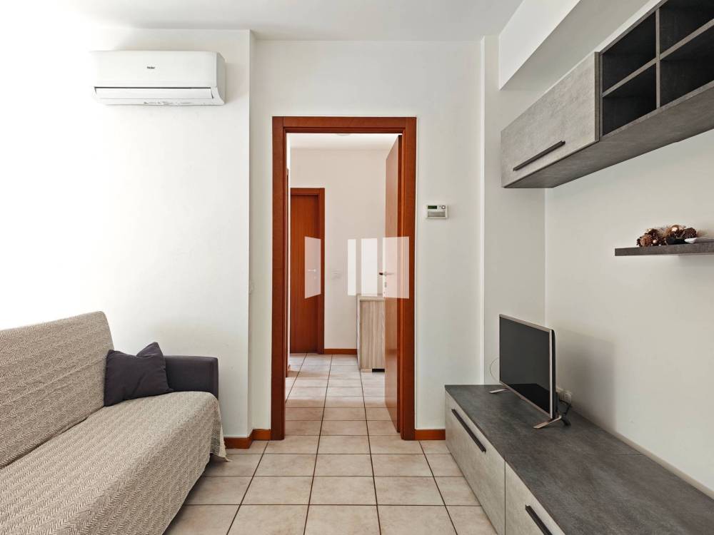 Limmobile si compone di un ingresso-soggiorno con cucina a vista; dalla zona giorno si accede al terrazzo abitabile dotato di tenda parasole (esposizione ovest), ideale per pranzi allaperto e relax serale. La zona notte comprende una camera matrimoniale, una camera singola e un bagno con doccia e finestra. Spazi ben organizzati e facilmente adattabili alle esigenze familiari.