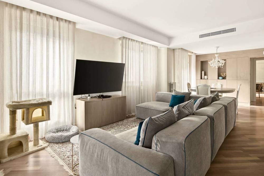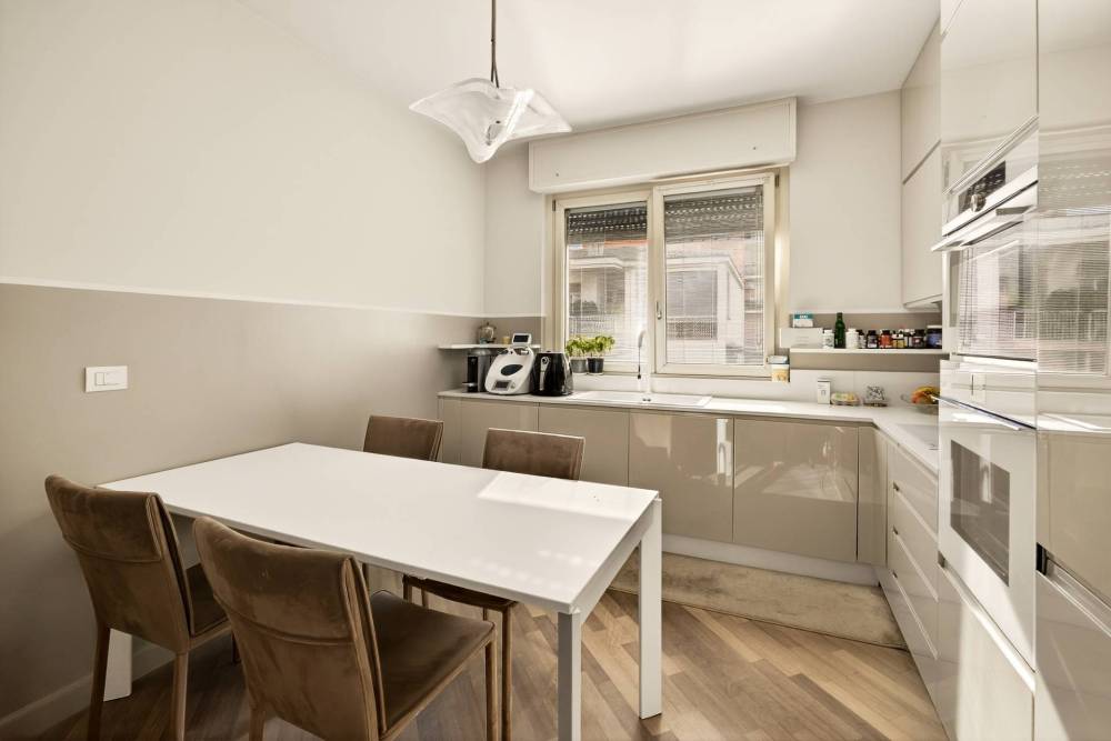 La cucina abitabile è separata e completamente arredata, perfetta per preparare deliziosi pasti da gustare nella spaziosa sala da pranzo adiacente.L'appartamento si compone di tre camere da letto, di cui una padronale con bagno privato.