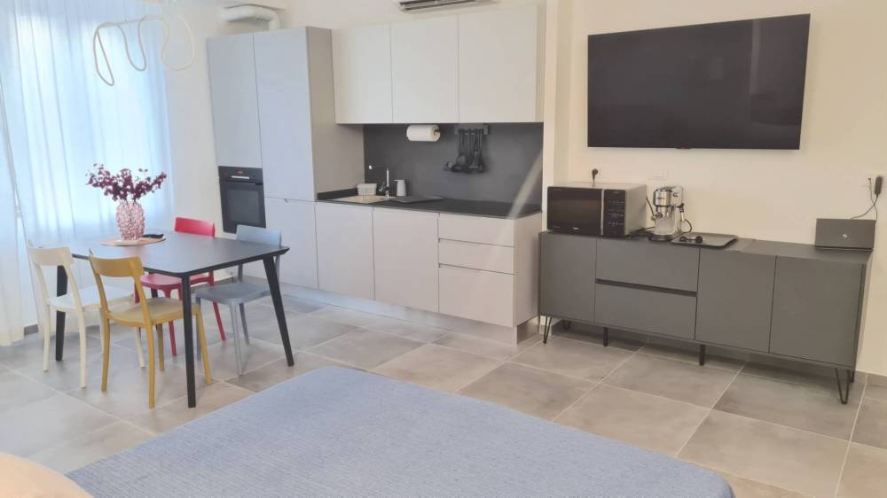 Arredato con mobili nuovi, cucina completamente attrezzata.