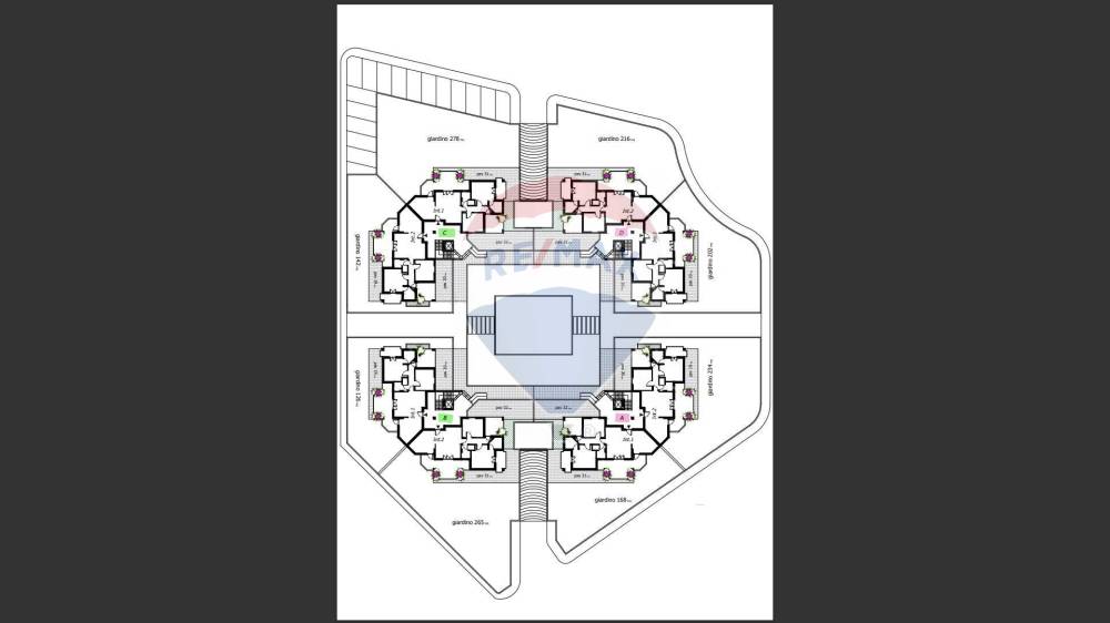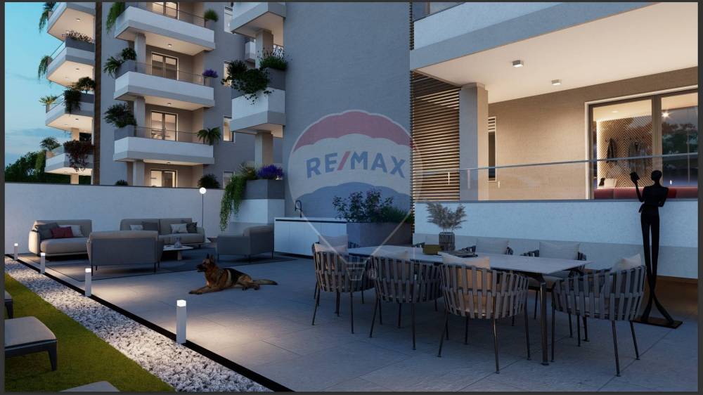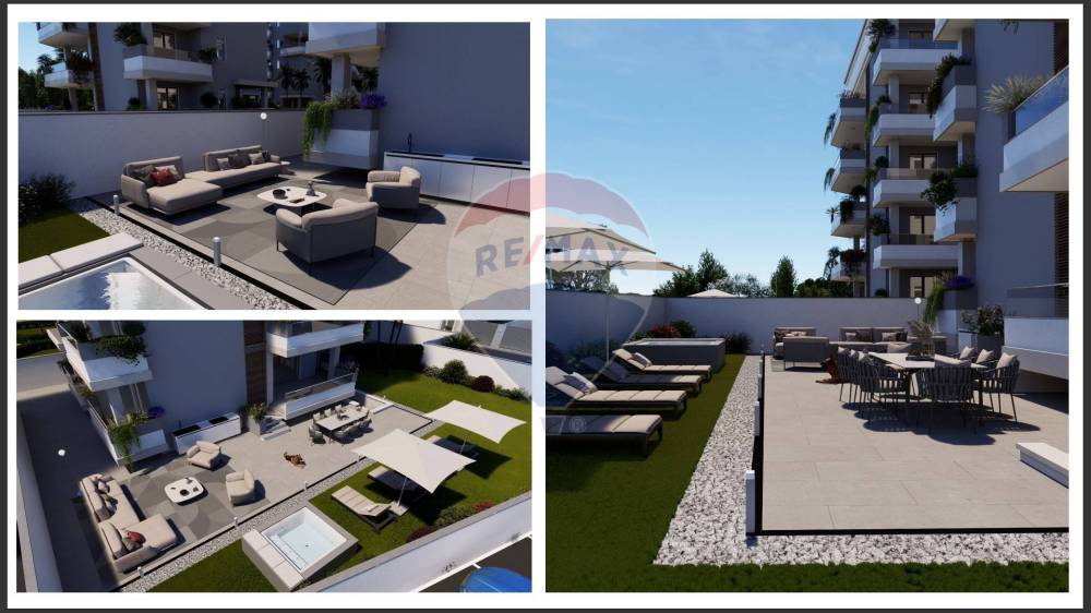 Tutti gli appartamenti al piano terra hanno una metratura di 90 mq coperti, con varie grandezze di giardino, oltre al terrazzo. Le dimensioni dei giardini variano dai 157 mq ai 332 mq. La tipologia interna è composta da ampia zona living con cucina  open, due camere da letto e doppi servizi.