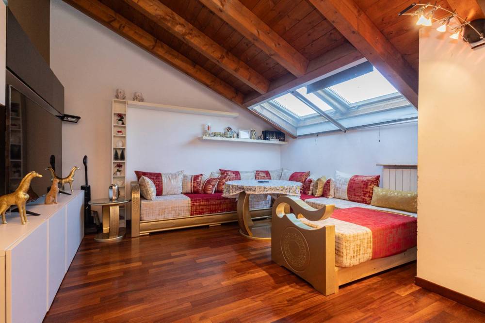 L'immobile è stato oggetto di ristrutturazione nel 2020 ed è rifinito con pavimentazione in elegante parquet, soffitto con travi a vista, infissi in legno e alluminio doppio vetro che permettono un ottimo isolamento termico ed acustico, tapparelle, aria condizionata e porta blindata.