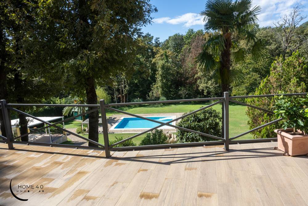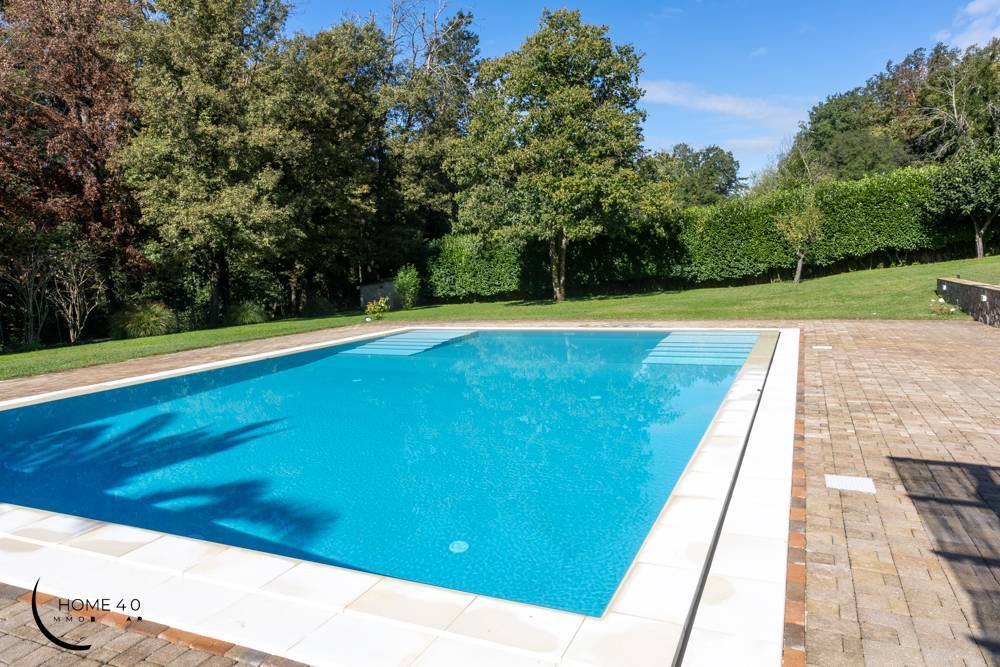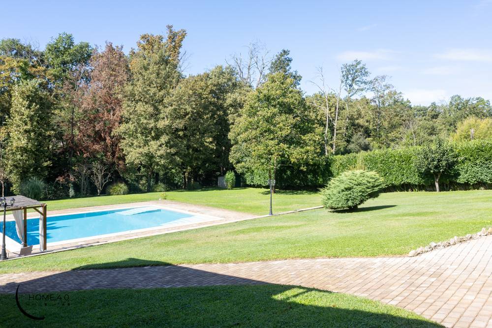 La proprietà è circondata da un incantevole giardino privato di quasi 5000 mq, curato nei minimi particolari ed impreziosito da una scenografica piscina a cloro e sale, ideale per momenti di relax e convivialità.