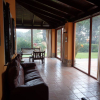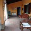 L'ingresso principale della villa si apre su una accogliente veranda a vetrate, coperta e caratterizzata da un salotto d'ingresso che conferisce un tocco di eleganza all'ambiete.