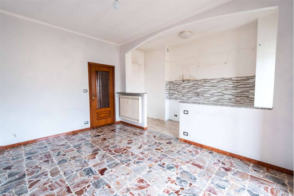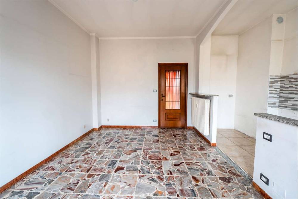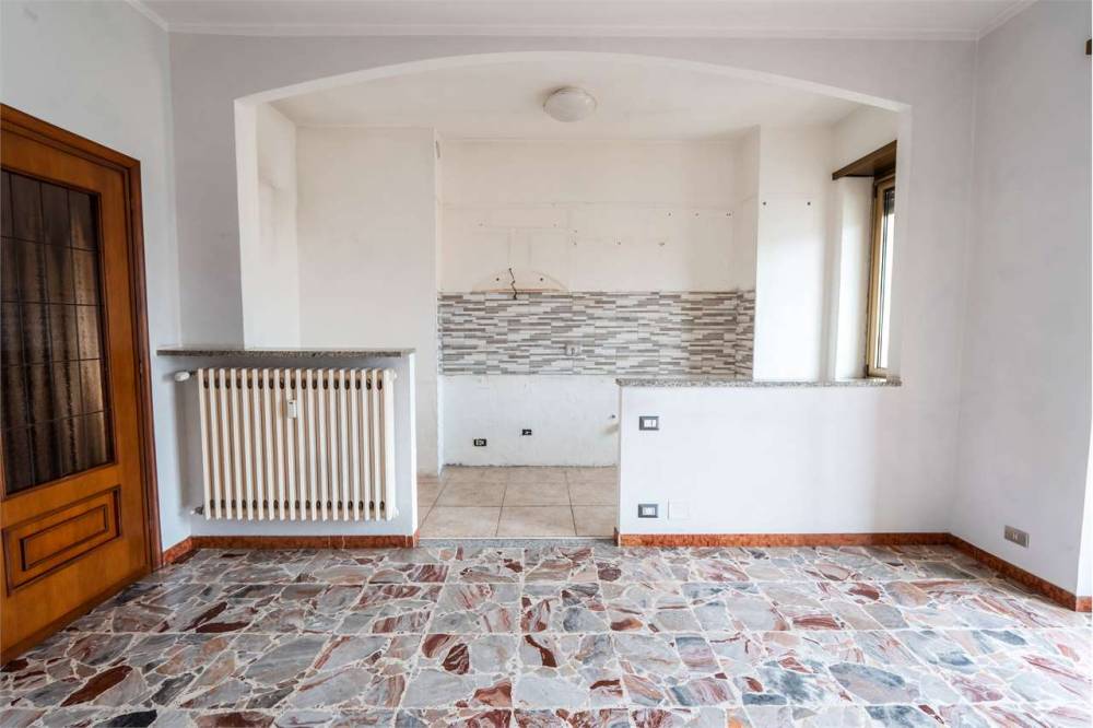 L'alloggio si apre su un ingresso che conduce alla zona giorno con soggiorno e angolo cottura, ideale per vivere in un ambiente pratico e funzionale.