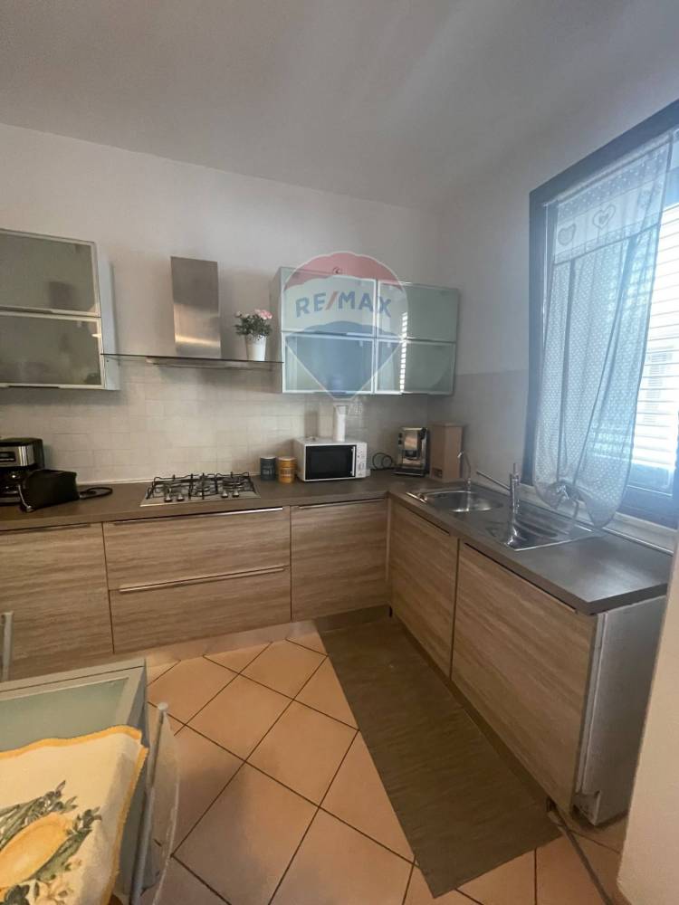 La casa è parzialmente arredata in modo elegante e funzionale, con una cucina completa di tutti gli elettrodomestici necessari.