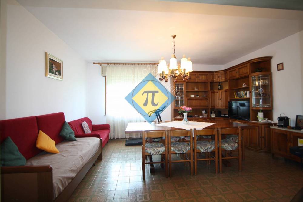 Il soggiorno è luminoso e si affaccia su un balcone, perfetto per godersi momenti di relax all'aperto.