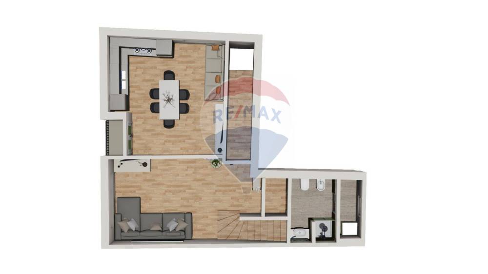 Il piano superiore è completato da un secondo bagno, anch'esso finemente rifinito e provvisto di ogni comfort. Lo stato conservativo dell'immobile è attualmente grezzo, offrendo la possibilità di personalizzare gli interni a proprio piacimento e secondo le proprie esigenze.