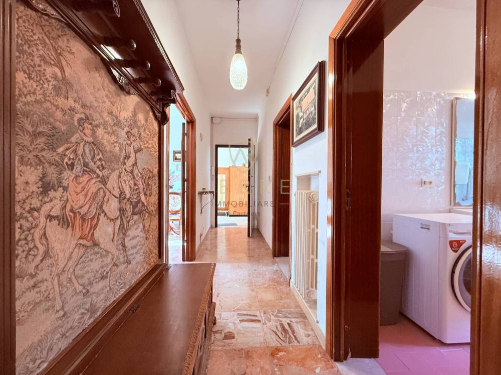 Ha una superficie di 107 metri quadrati catastali così suddivisa: ingresso su lungo disimpegno, soggiorno, cucina abitabile, 2 camere da letto matrimoniali, ripostiglio e 1 bagno con la doccia. Gli spazi sono ampi e luminosi, il che lo rende perfetto per chi ama avere tanta luce naturale in casa. Inoltre nella parte retrostante abbiamo un garage di circa 30mq, attualmente utilizzato come ambiente pluriuso.