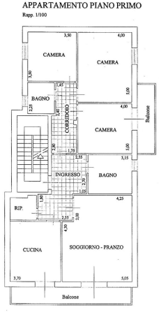 L'immobile si trova al primo piano ed è composto da ingresso, soggiorno-pranzo, cucina, ripostiglio, corridoio, tre camere, due bagni e due balconi.