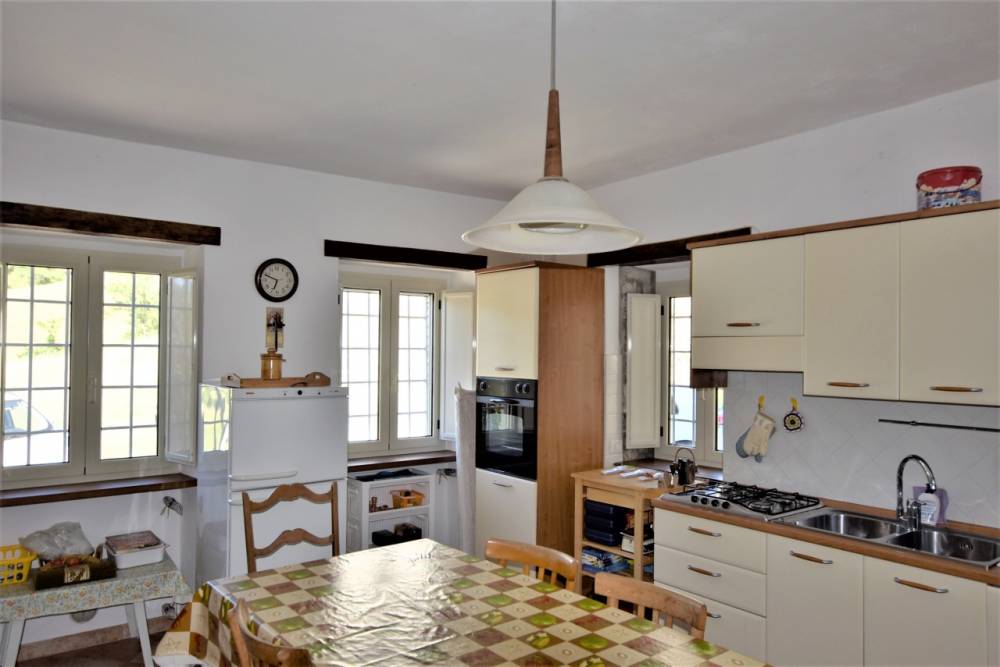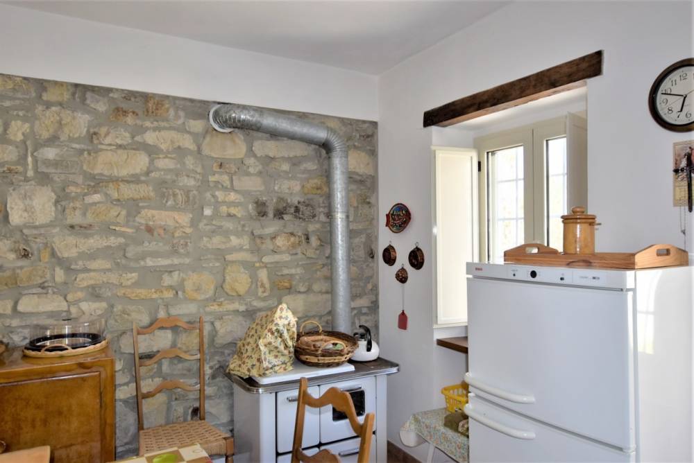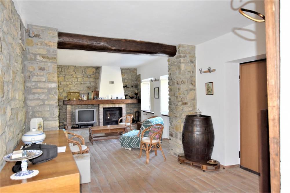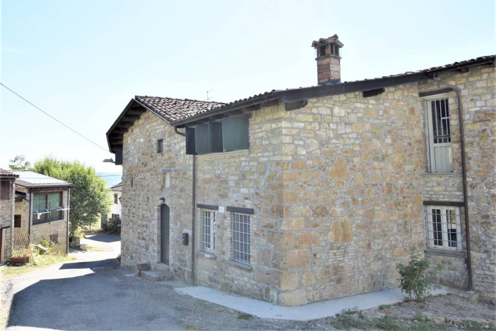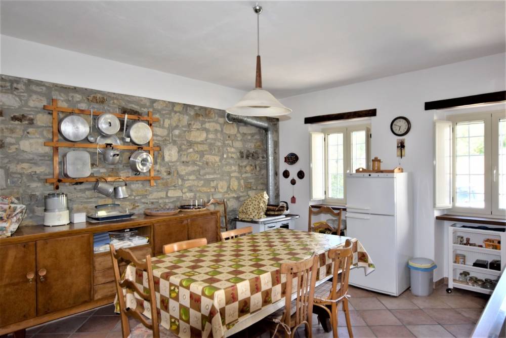 Limmobile: la casa è una costruzione tipica in sasso con copertura in coppi antichi sapientemente ristrutturata abbinando soluzioni tecniche moderne alla salvaguardia e al riutilizzo dei materiali originali ed è così composta: ampio soggiorno con camino a legna, con canalizzazione dellaria riscaldata al piano superiore, cucina abitabile con stufa economica a legna, doppi servizi con finestre, 3 camere da letto, box auto doppio, grande cantina con antica pavimentazione originale in pietra, legnaia, ampia terrazza per cene in compagnia e dotata di forno a legna, cortile e piccolo giardino; la proprietà è completata da un boschetto a circa 200 metri dallabitazione.