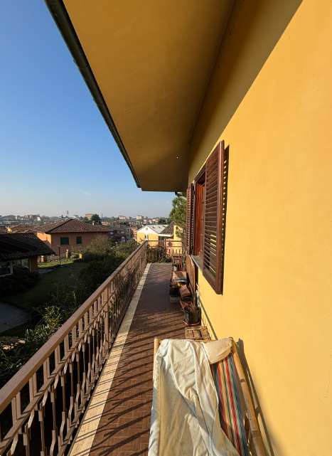 Porzione di casa sita nel comune di Chieri (TO) in Via Giordano Bruno. L'immobile è composto al piano terreno da ingresso, soggiorno, cucina, tre camere, bagno, balcone e terrazzo; al piano seminterrato da disimpegno, tavernetta, bagno-lavanderia, cantina, locale centrale termica e area scoperta. Per completare l'immobile troviamo un locale autorimessa con superficie catastale di mq 28.